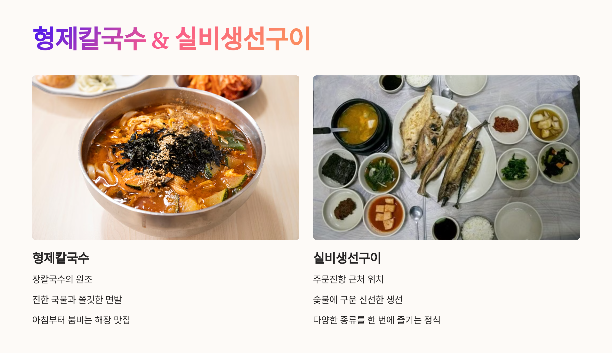 강릉은 아름다운 해변과 풍부한 문화유산뿐만 아니라 다양한 맛집으로도 유명한 곳입니다. 현지인들이 추천하는 진짜 맛집 10곳을 소개해 드릴게요! 🍽️